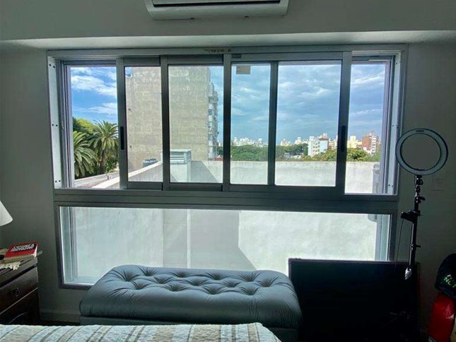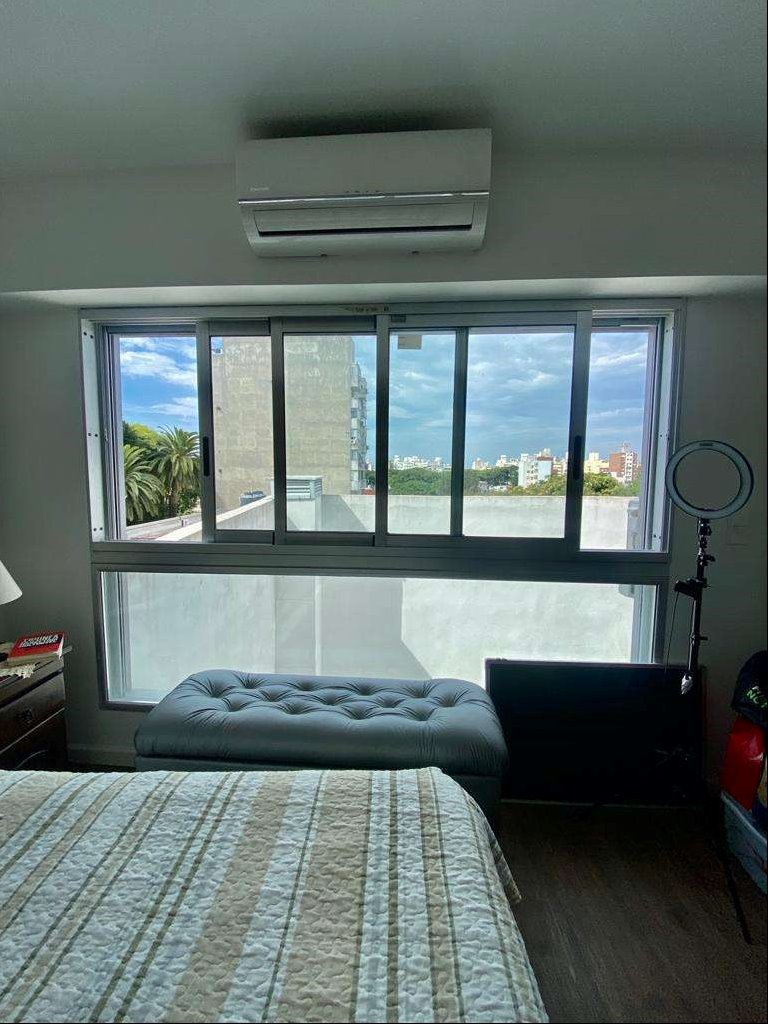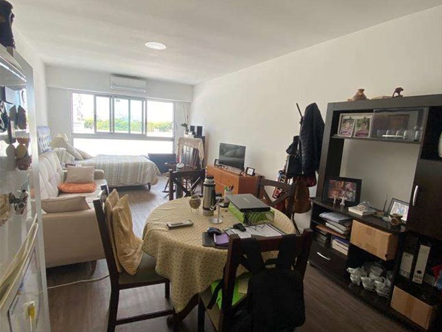 Excelente Monoambiente de los grandes, con amplio ventanal con cortina automatizada, aire acondicionado, pisos símil madera de alto transito y fácil mantenimiento.