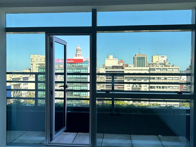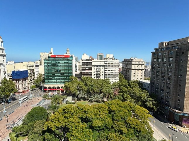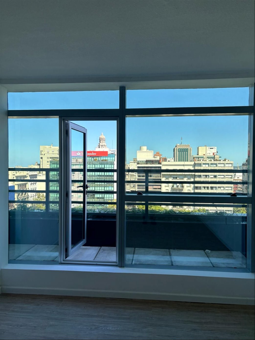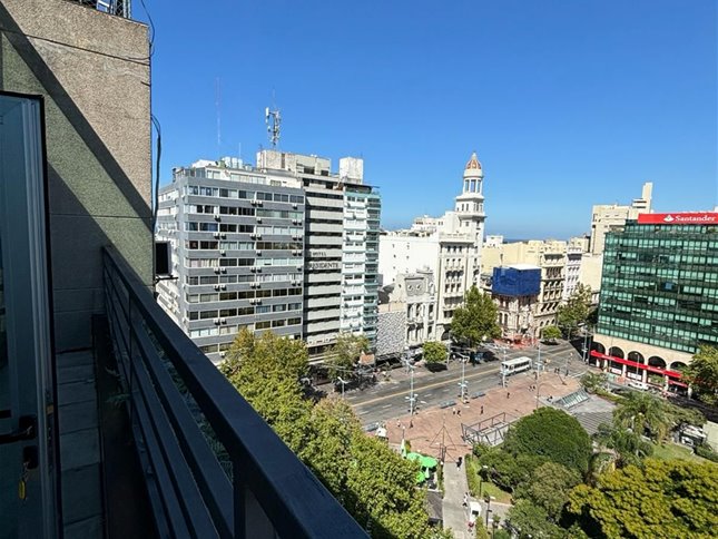 Alquiler de amplio monoambiente en el Edificio Green Tower frente a Plaza de los Treinta y Tres con vista despejada, super luminoso. A pasos de la Avenida 18 de Julio.