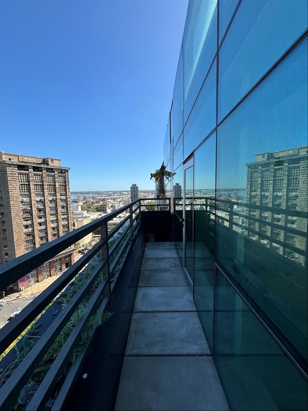 El monoambiente es muy amplio de 39 m2. con una amplia terraza balcón con vista despejada a la ciudad.