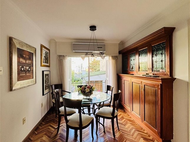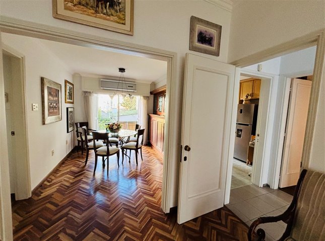 Originalmente era de 3 dormitorios, actualmente es de un dormitorio principal al frente con vestidor (segundo dormitorio al contra frente), el tercer dormitorio hoy convertido en comedor (al contra frente) con arcada integrado al living. Sé ha dejado todo para q vuelvan a ser nuevamente dormitorios en el caso de necesitarlos.