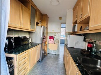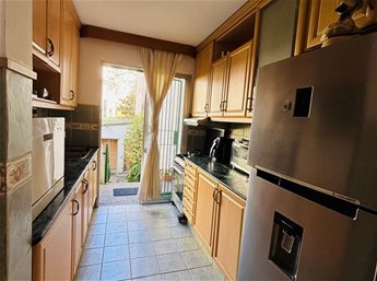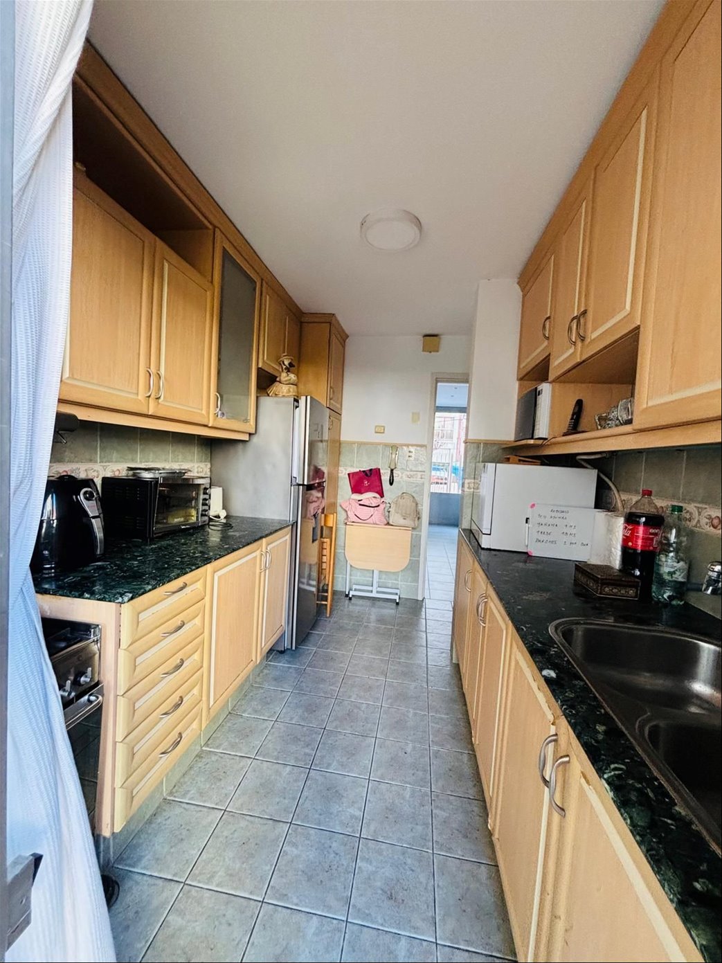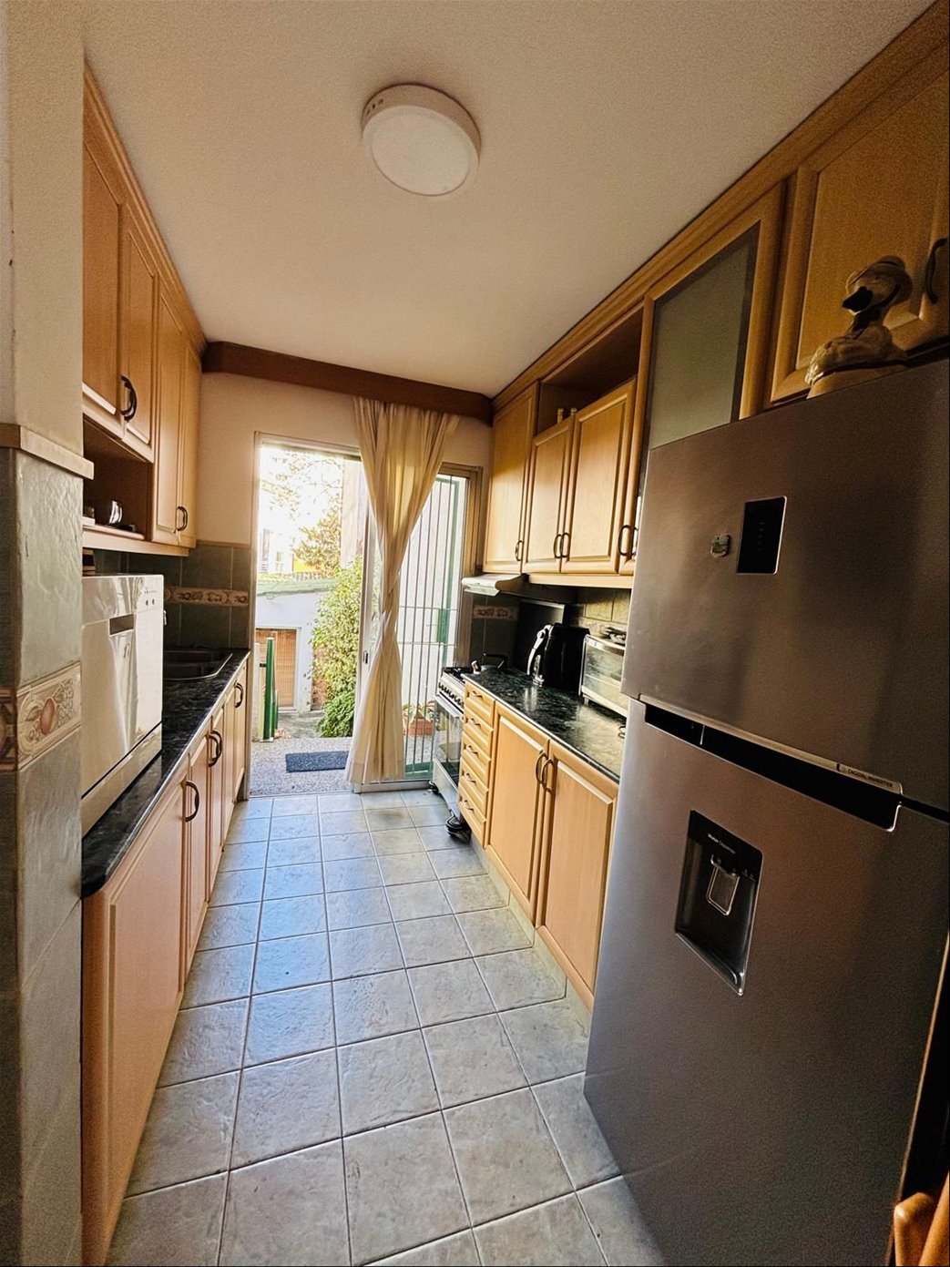 Su cocina definida esta bien equipada con doble mesada y placar de ultima generación con salida al fondo.